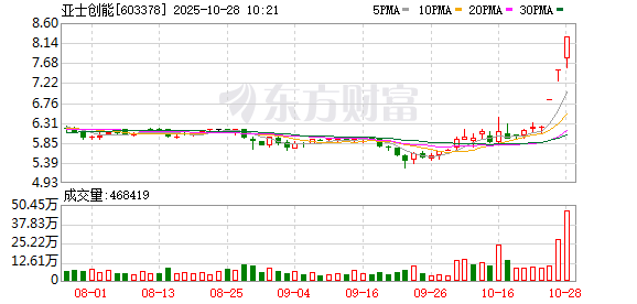 亚士创能盘中涨停,已连收3个涨停板,截至9:34,该股报8.27元,换手率6.35%,成交量2720.41万股,成交金额2.16亿元,连续涨停期间,该股累计上涨32.96%,累计换手率为15.39%。最新A股总市值达35.44亿元。