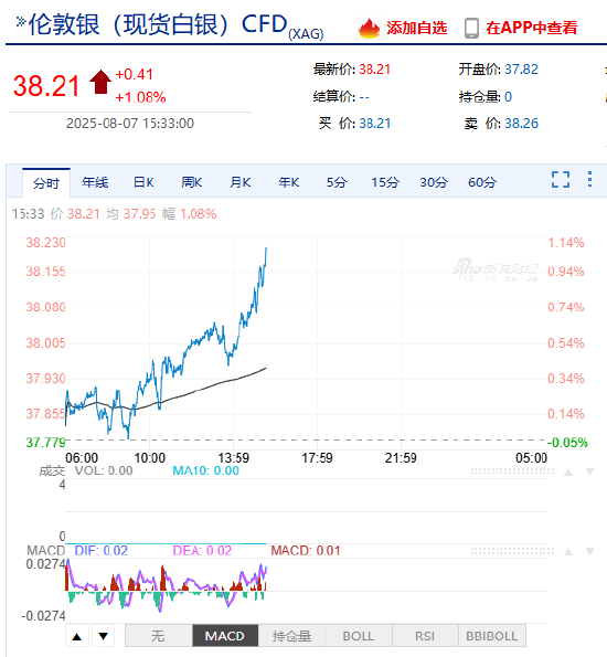 北京时间8月7日下午炒股配资开户网,现货白银日内涨幅扩大至1.00%,现报38.19美元/盎司。